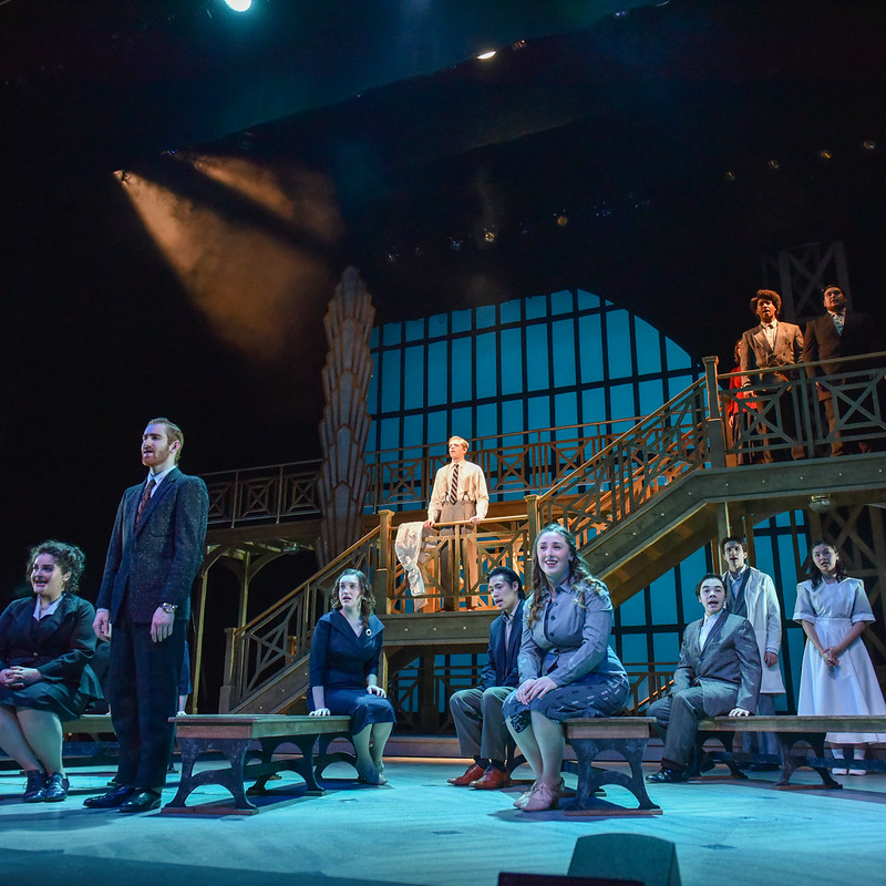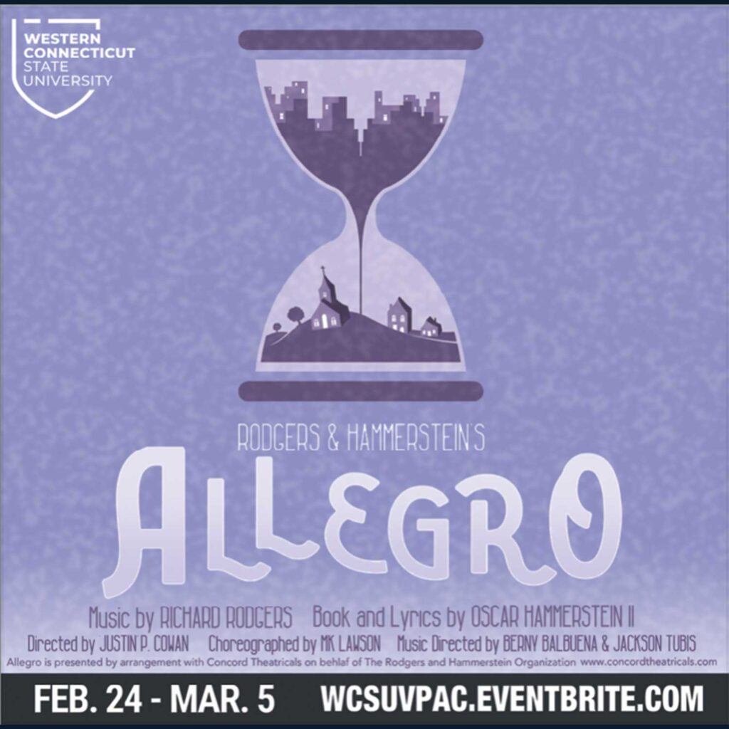 This ensemble musical chronicles nearly four decades in the life of an Everyman, Joseph Taylor, Jr., from cradle through a mid-life discovery of who he is and what his life is truly about. The first musical to be staged by a director who also served as choreographer (the legendary Agnes de Mille), Allegro follows a unique structural format traveling from Joe’s birth through his childhood, from college dorm to marriage altar, and on to his career; from the tranquility of his small Midwestern hometown to the hectic din of big city life, in a series of vignettes and musical sequences dazzling in their simplicity and stunning in their impact.
